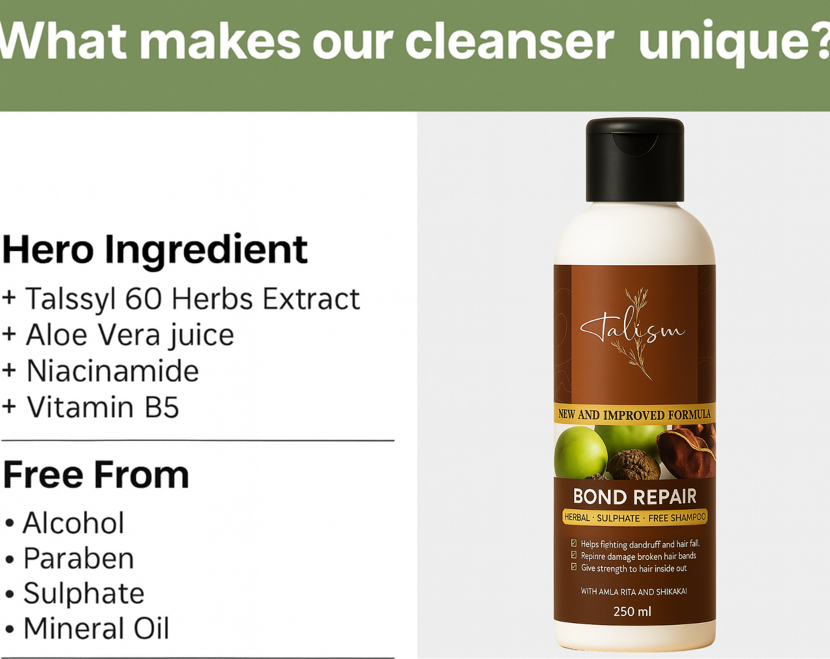 To use a herbal shampoo, wet your hair thoroughly. Apply a small amount of shampoo to your scalp and massage it in gently. Rinse thoroughly with warm water. For best results, use Talism Frizz Serum after Shampoo.
