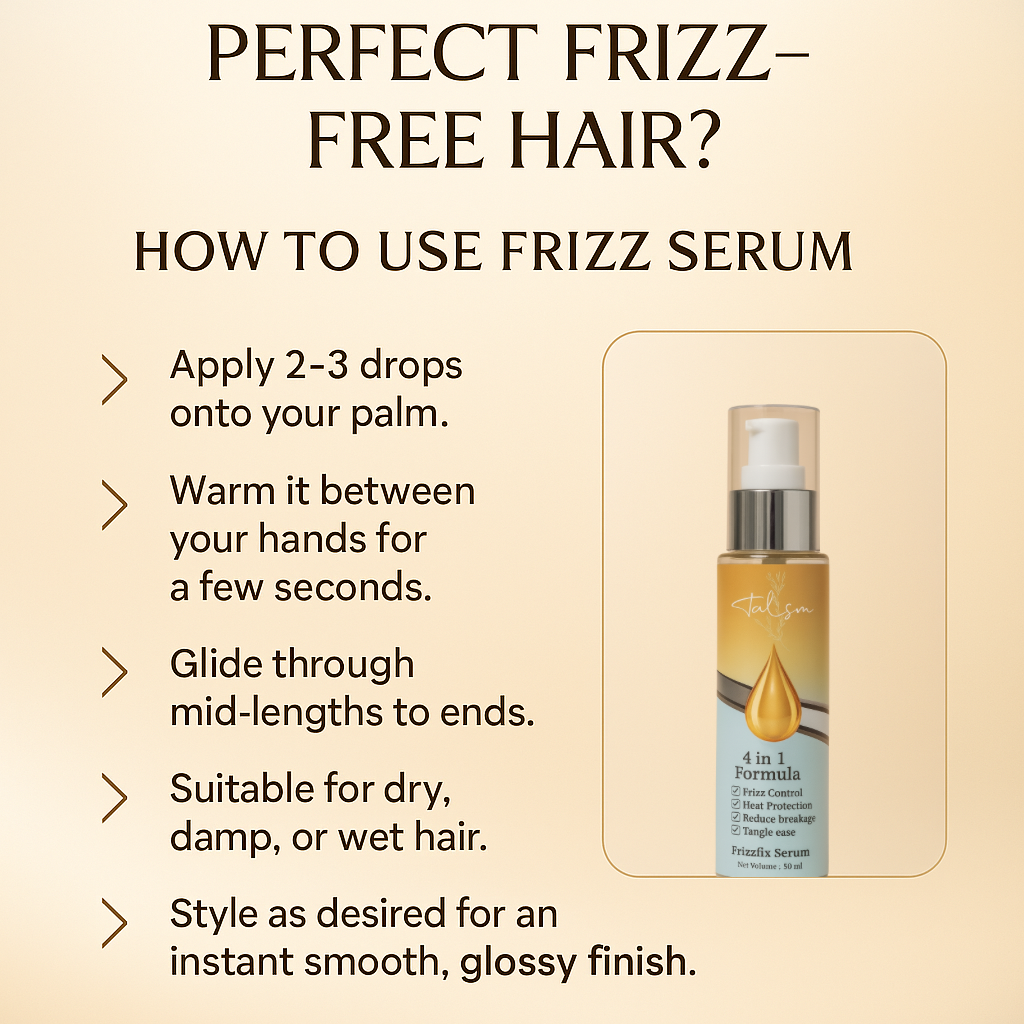 Work through hair: Run your fingers through your hair to distribute the serum evenly. Focus on the ends and any areas that tend to frizz the most.